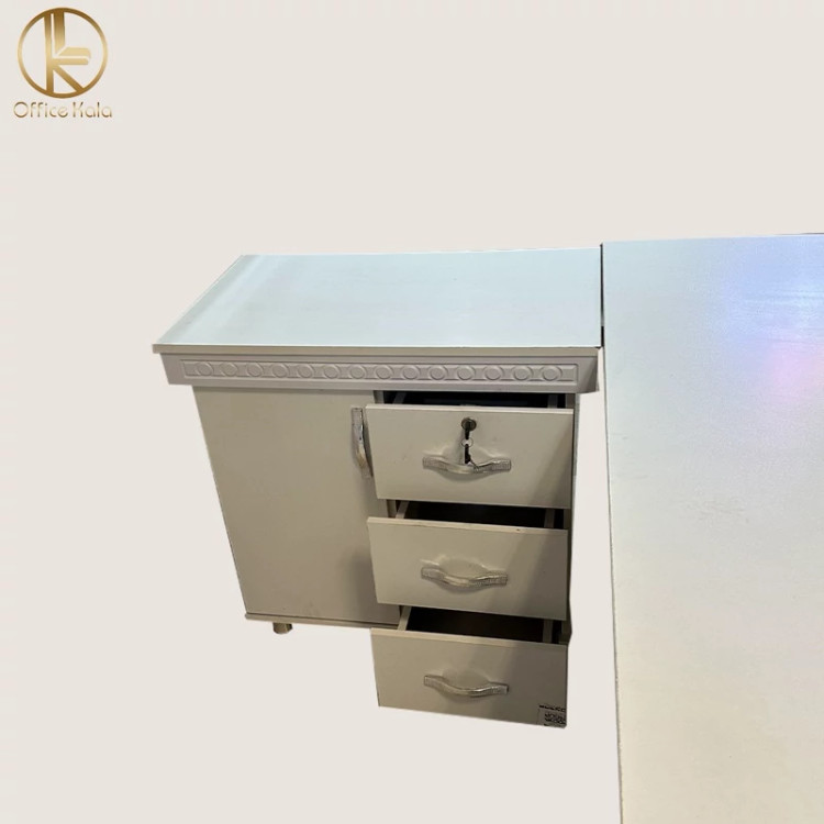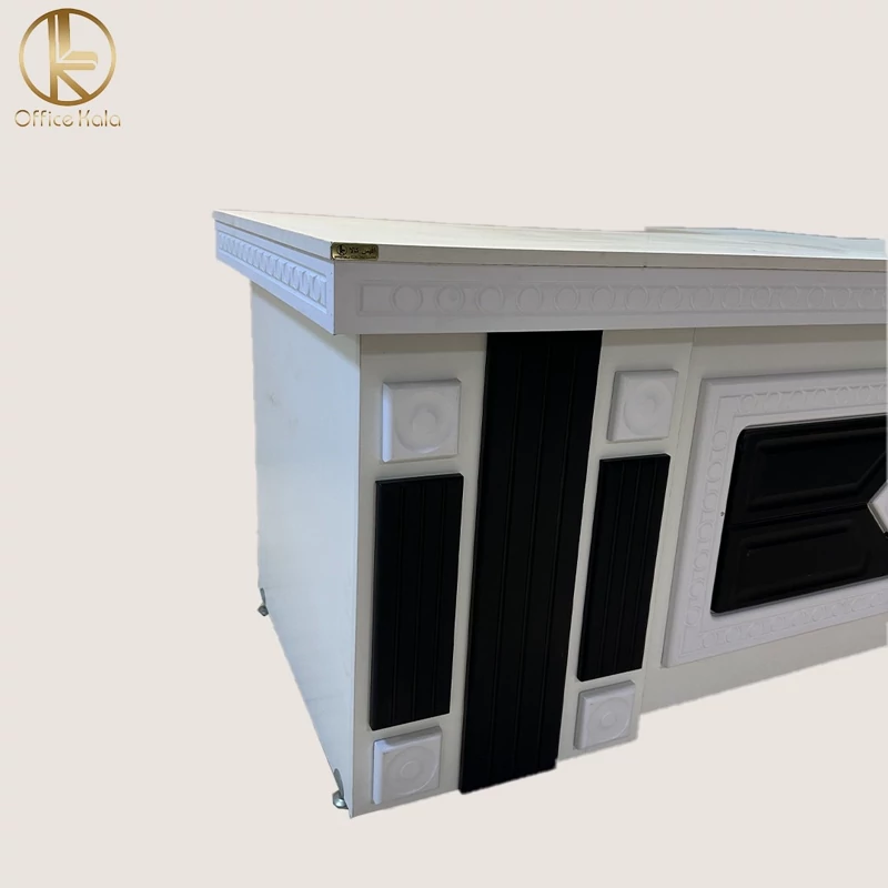 اگه دنبال یه میز مدیریتی دو متری هستید که هم قیمت عالی داشته باشه هم جا دار باشه غزال گزینه خوبیه! چون دارای یه ال هم سطح متحرکه که هرجا بخوای میتونی بذاری که سه تا کشو و یه درب میخوره که وسایلتو داخلش میذاری! جنس بدنه محصول ترکیب mdf وکیوم کاری شده با ملامینه ضد خشه که در مقابل رطوبتم مقاومه و باعث زیباتر شدنش شده! درضمن رنگ بندی محصول کامله و از همه جالب تر میتونی ست میز مشاورش رو هم تو ابعاد کوچیک تر باهاش ست کنی!