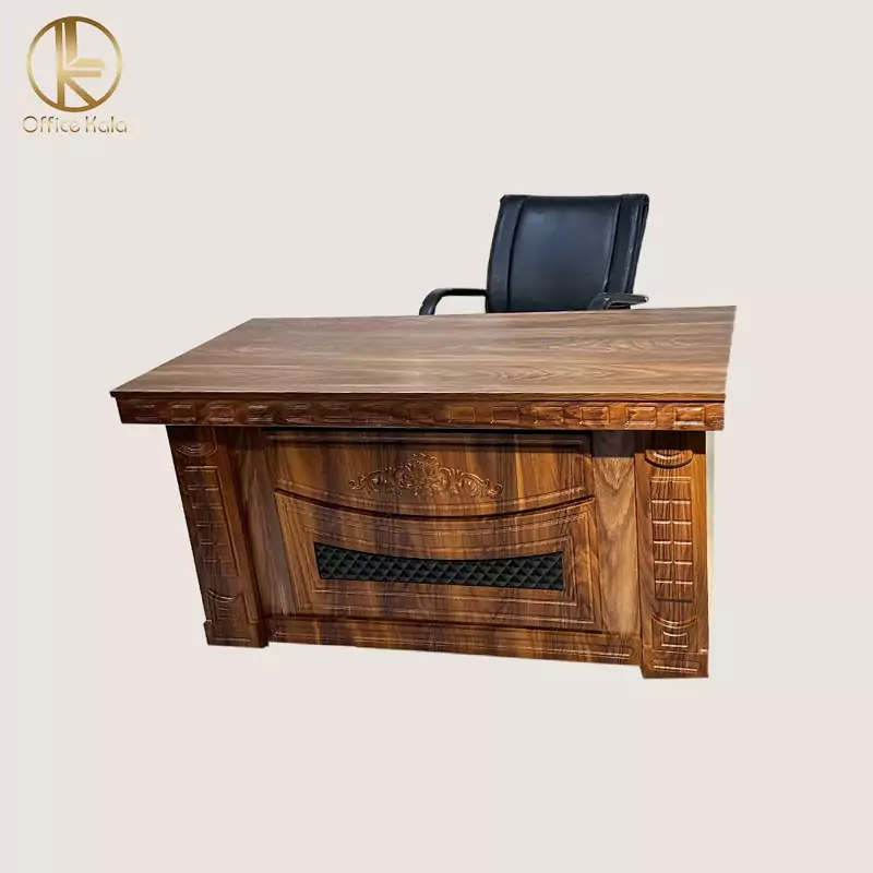 مدل آراد که یه مدل جدید هست در ابعاد 140 و 180 تو مجموعه آفیس کالا تولید میشه اما اگه برای منشی یا میز مشاور هستی که فضای کمی اشغال کنه بدون شک یکی از زیباترین مدل هاست! این کار بواسطه پنل طرح خم شکل وکیوم که داره زیبایی خاصی به محل کارتون میده و به راحتی با مبلمان و سایر لوازمتون میتونید ست کنید! در ضمن دارای دو کشو هست . جنس چوب کار ترکیب ام دی اف و ملامینه ضد خش هست که مقاومت بالایی داره.
