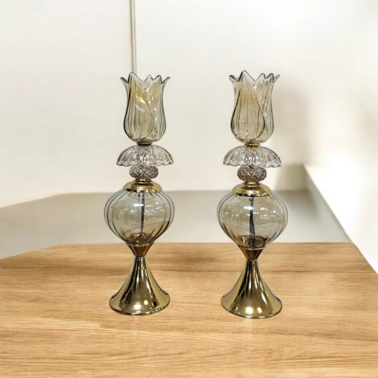شمعدان شیشه ای آبکاری برند آفیس کالا